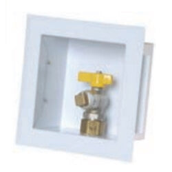 The TracPipe FGP-WBTM-500 is a metal wall box designed for zero clearance appliance installations. It features a 90-degree valve assembly compatible with half-inch TracPipe and CounterStrike systems.