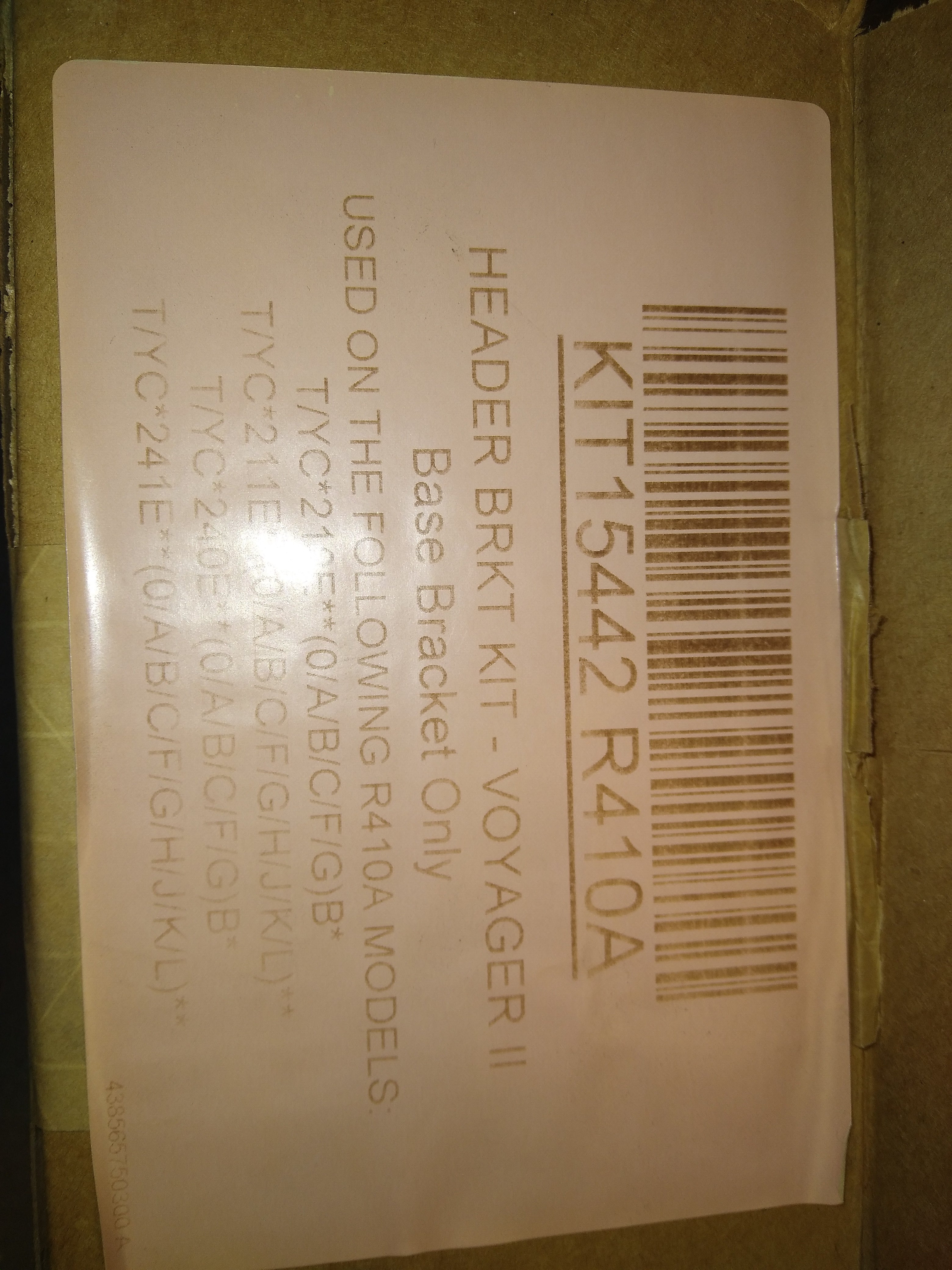 The Trane KIT15442 is a header bracket kit designed for T/YC210E, T/YC211E, T/YC240E, and T/YC241E models. This kit is essential for ensuring proper installation and support of the corresponding units.