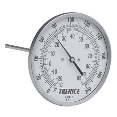 The Trerice Bi-Metal Thermometer, MPN B8320204, is built for standard industrial applications. It features a durable stainless steel case that withstands harsh conditions. The thermometer's design allows for easy reading and accurate temperature measurement in a variety of settings.