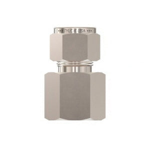 The Tylok SS-6-DFC-4 is a DFC series stainless steel female connector designed for various piping applications. This connector features a nominal size of three-eighths by one-quarter inches and utilizes a tube by NPT connection style. The component is made from high-quality 316 stainless steel, ensuring durability and resistance to corrosion. This product is suitable for high-pressure applications due to its robust construction and heat code traceability.