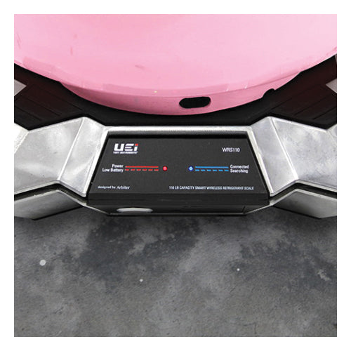 The UEi Test Instruments WRS110 is a smart wireless refrigeration scale with a capacity of one hundred ten pounds. This device allows users to take readings on a compatible smart device via a free app. It features a durable and compact design suitable for various HVAC applications.