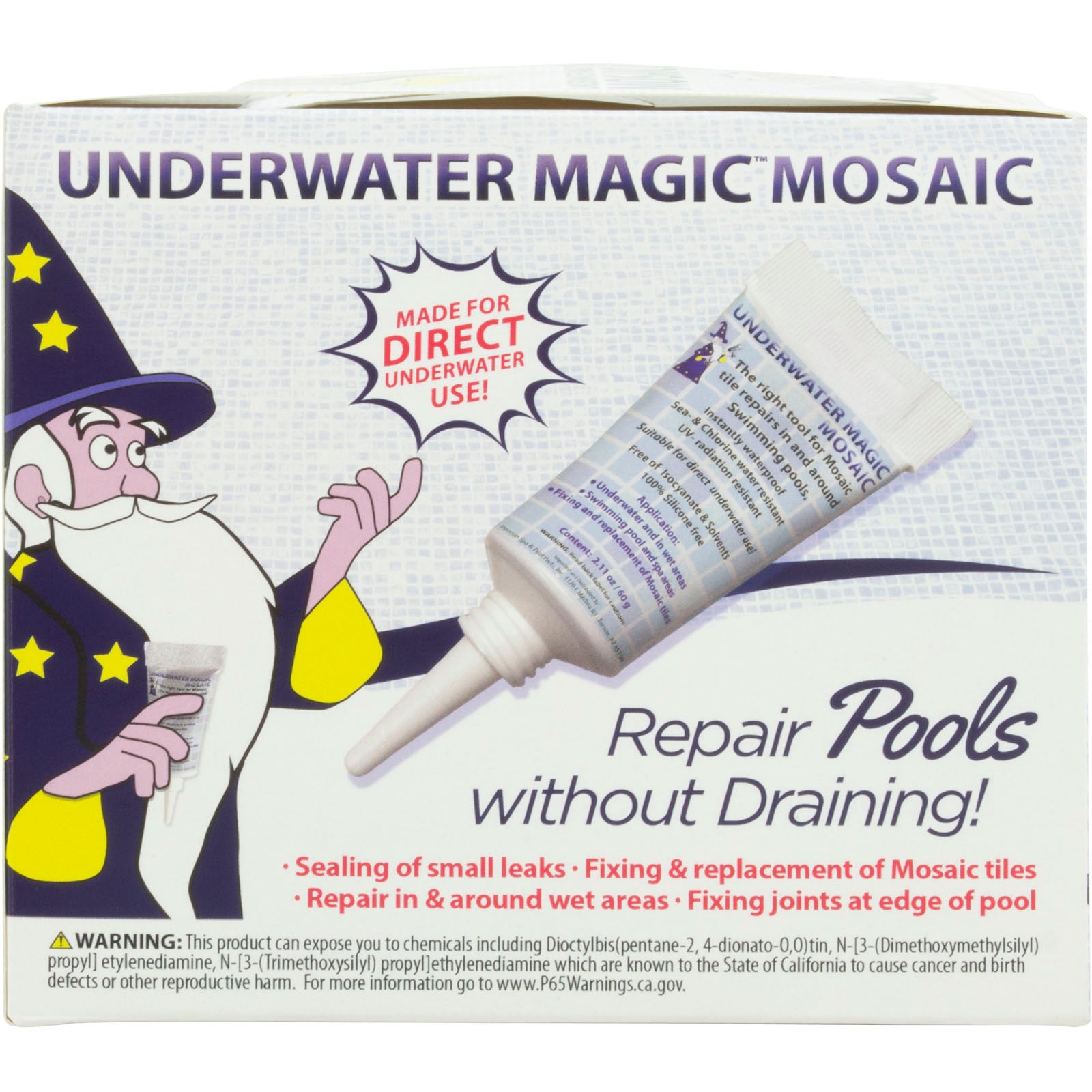The Underwater Magic MOSAIC sealant is excellent for minor repairs and maintenance in pools. Its resistance to shock and UV light enhances its usability across various applications.