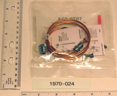 The Robertshaw Thermocouple, model number 1970-024, is designed for precise temperature sensing in pilot burner applications. This thermocouple measures twenty-four inches long and operates within a voltage range of twenty to thirty millivolts. Made with a copper and nickel alloy element and encased in a stainless steel jacket, it is built for durability and reliability.