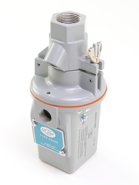 The Fireye 45UV5-1005 UV Self-Check Scanner uses ultraviolet technology to detect flames, ensuring accurate and continuous monitoring of combustion processes. Its self-checking feature allows for ongoing diagnostics, minimizing downtime. This scanner is ideal for use with various fuel types and industrial applications, including boilers, furnaces, and kilns.
