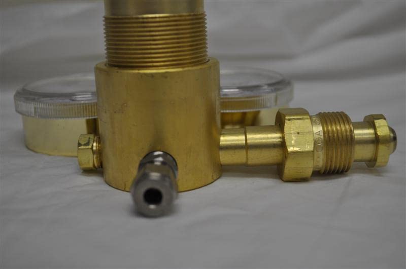 The Victor 0781-1470 SR4K-680 Professional High Pressure SR 4 Regulator is designed for heavy-duty applications involving larger cylinders. This regulator is suitable for pressure vessel testing and dead-end testing to ensure safety and reliability in operations. Constructed with a machined brass body, it features a robust housing cap and two and a half inch brass gauges for accurate monitoring.