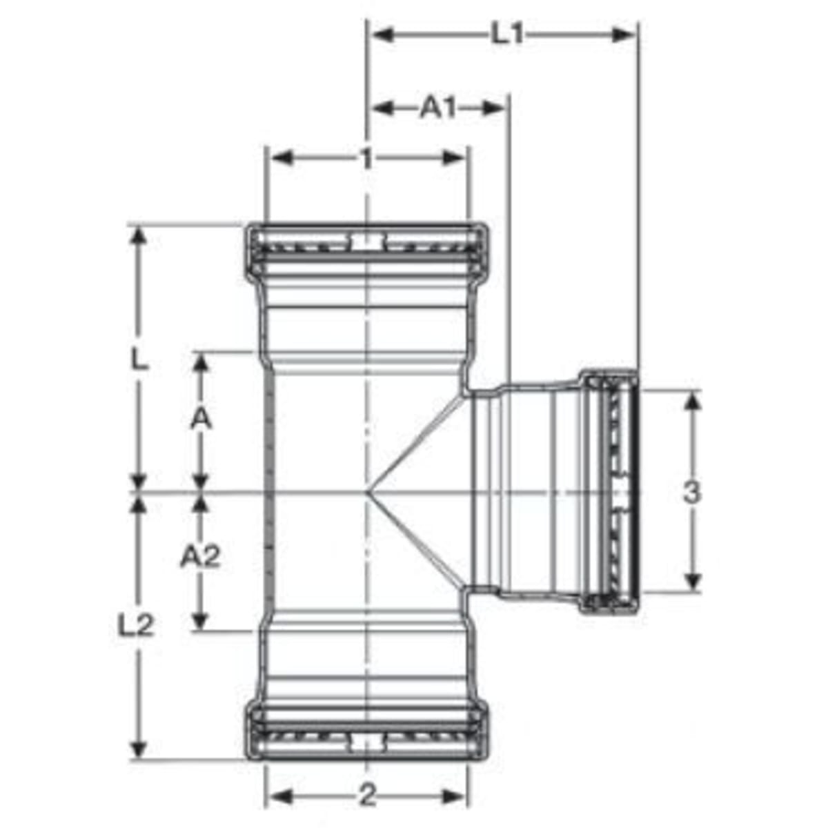 The Viega 20734 Pipe Tee connects varying sizes of copper tubing. It features a press end style for strong, reliable connections. This fitting is suitable for both commercial and residential applications.