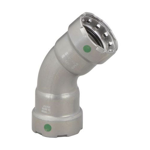 The Viega 25255 MegaPress 2-inch 45-Degree Elbow is a reliable solution for various piping applications. This pressing fitting is designed for hydronic heating, compressed air, and fire sprinkler systems.