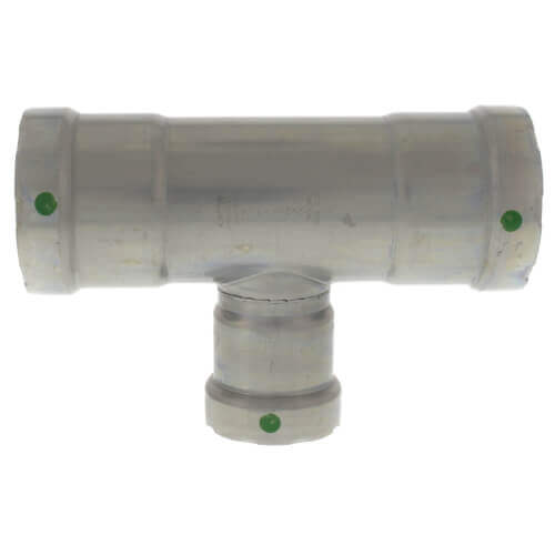 The Viega 26590 MegaPress XL Tee is a carbon steel fitting designed for press connection systems. This tee is intended for use in water applications with a nominal size of three inches by three inches by one and one-half inches. The patented Viega Smart Connect technology offers a reliable connection in less than seven seconds. This minimizes downtime by allowing for wet connections, which is crucial for fast-paced installations.