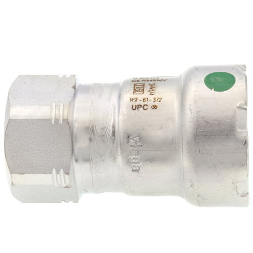 The Viega 90265 is a 3/4 MegaPress 316 stainless steel female adapter designed for plumbing applications. This adapter allows for a secure press connection, ensuring reliable performance in various systems.