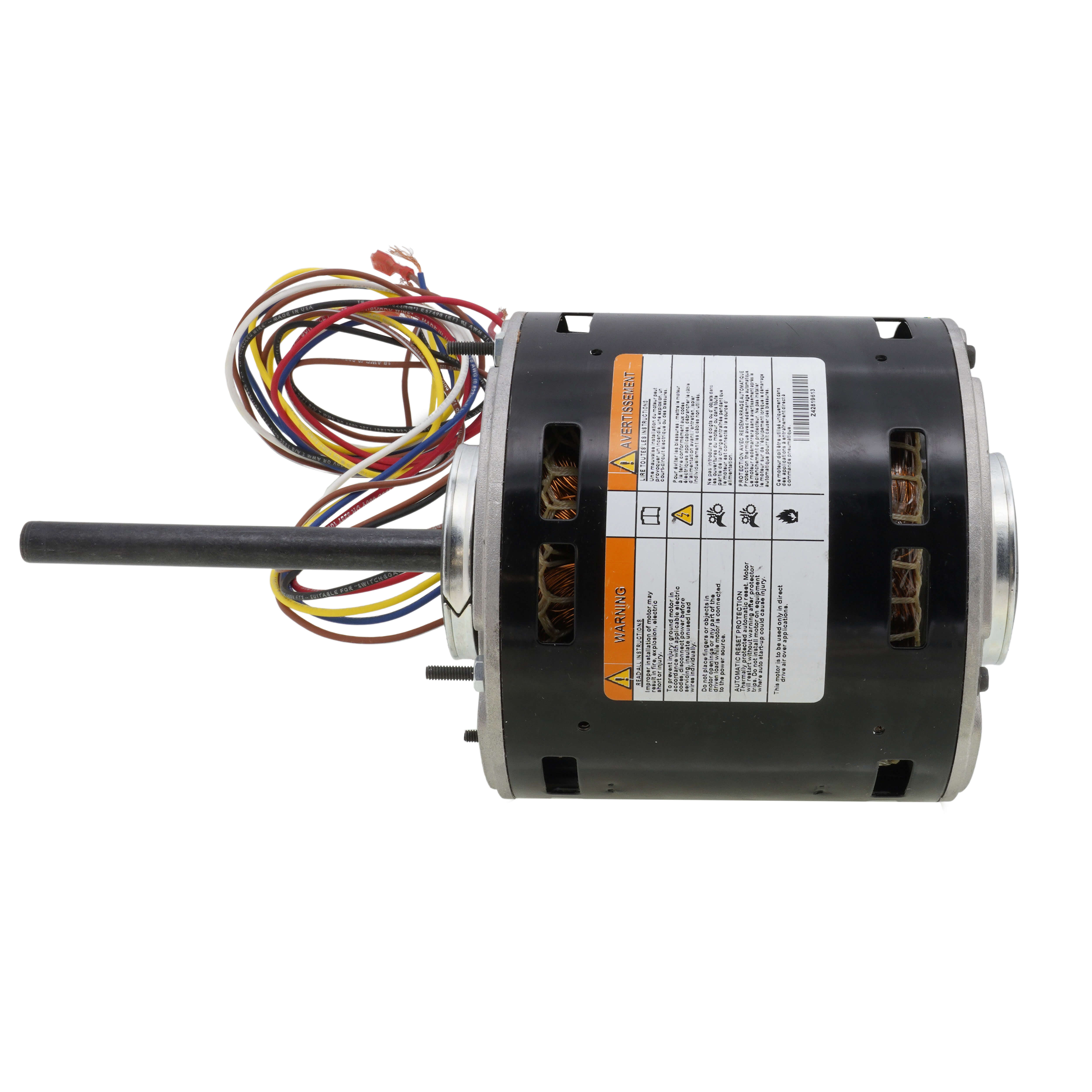 The motor features extended bolts and lead wires for easy installation. Its versatile design makes it suitable for multiple applications, covering a range of horsepower from 1/2 to 1/6.