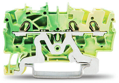 The WAGO 2002-1307 is a 3-conductor ground terminal block designed for use in Ex e II applications. This terminal block features a side and center marking for easy identification during installation. It is compatible with DIN rail sizes 35 x 15 millimeters and 35 x 7.5 millimeters. The push-in CAGE CLAMP design ensures a secure connection for conductors.