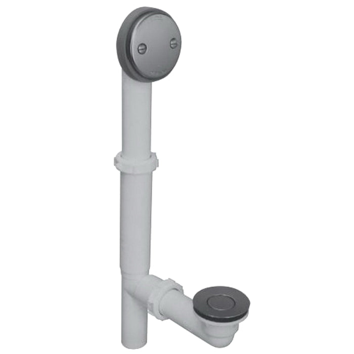 The Watco 500-LT-PVC-CP is a plastic lift and turn drain designed for use in various bath applications. It features a chrome-plated finish for enhanced durability. This complete bath waste kit is suitable for tubs up to sixteen inches deep and is built for heavy-duty use.