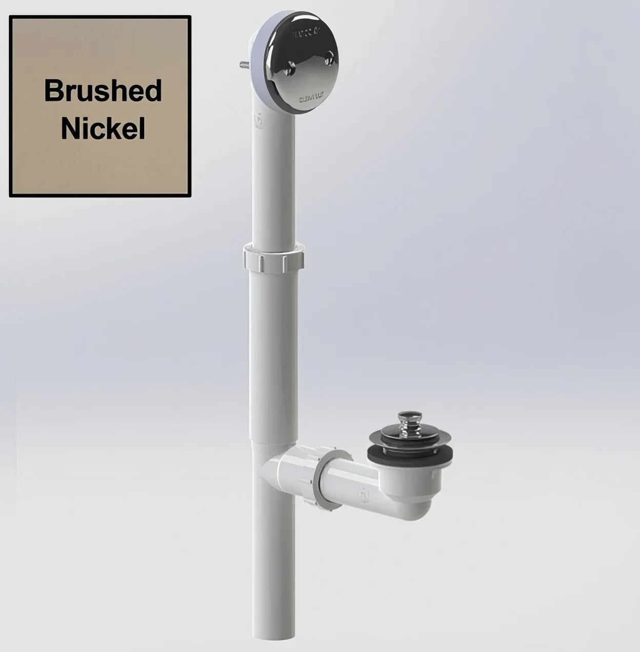 The Watco Innovator 590-LT-PVC-BN is a lift and turn bath waste kit. It is made of PVC with a brushed nickel finish. This unit is designed for easy installation and compatibility with 14 to 16 inches drain openings in bathtubs.