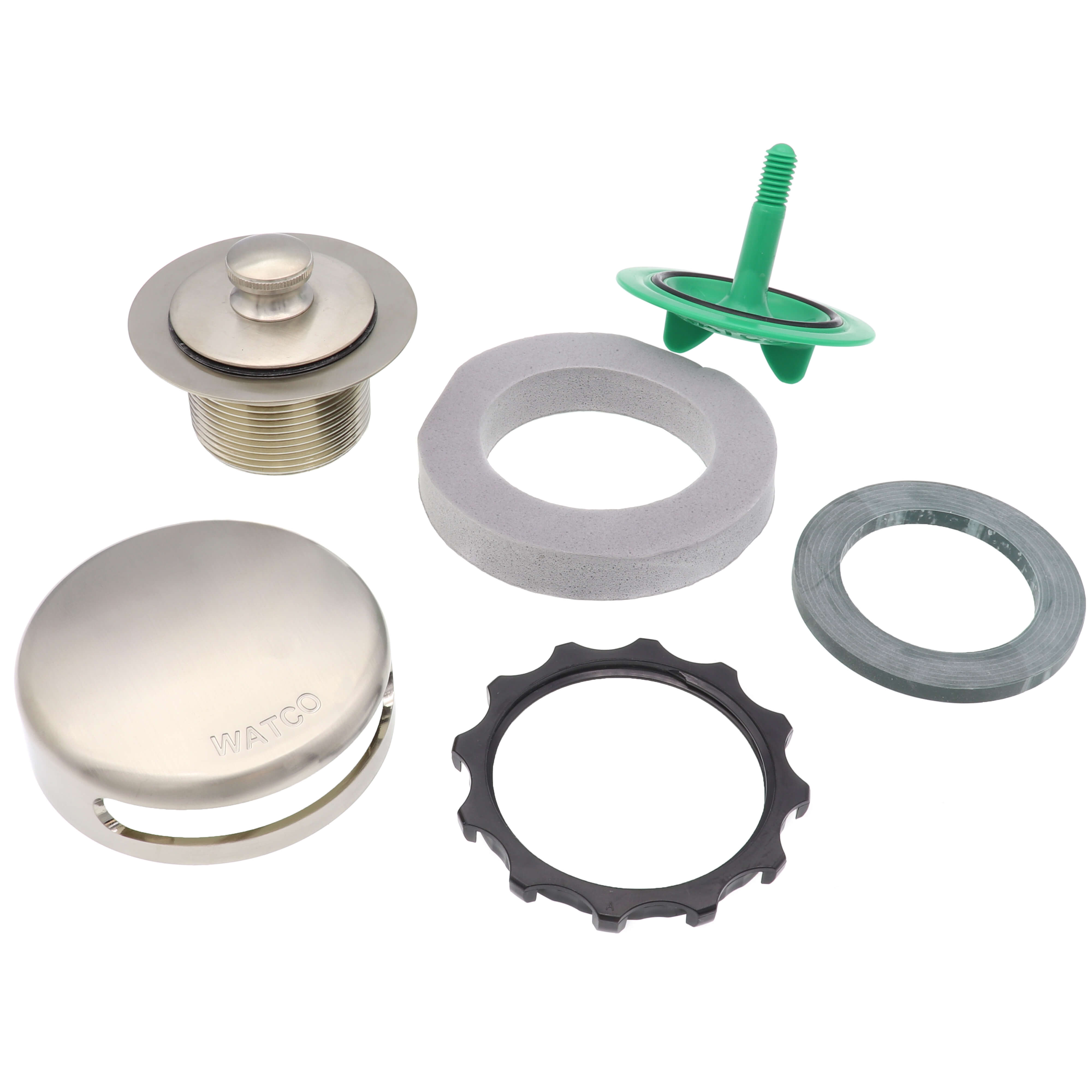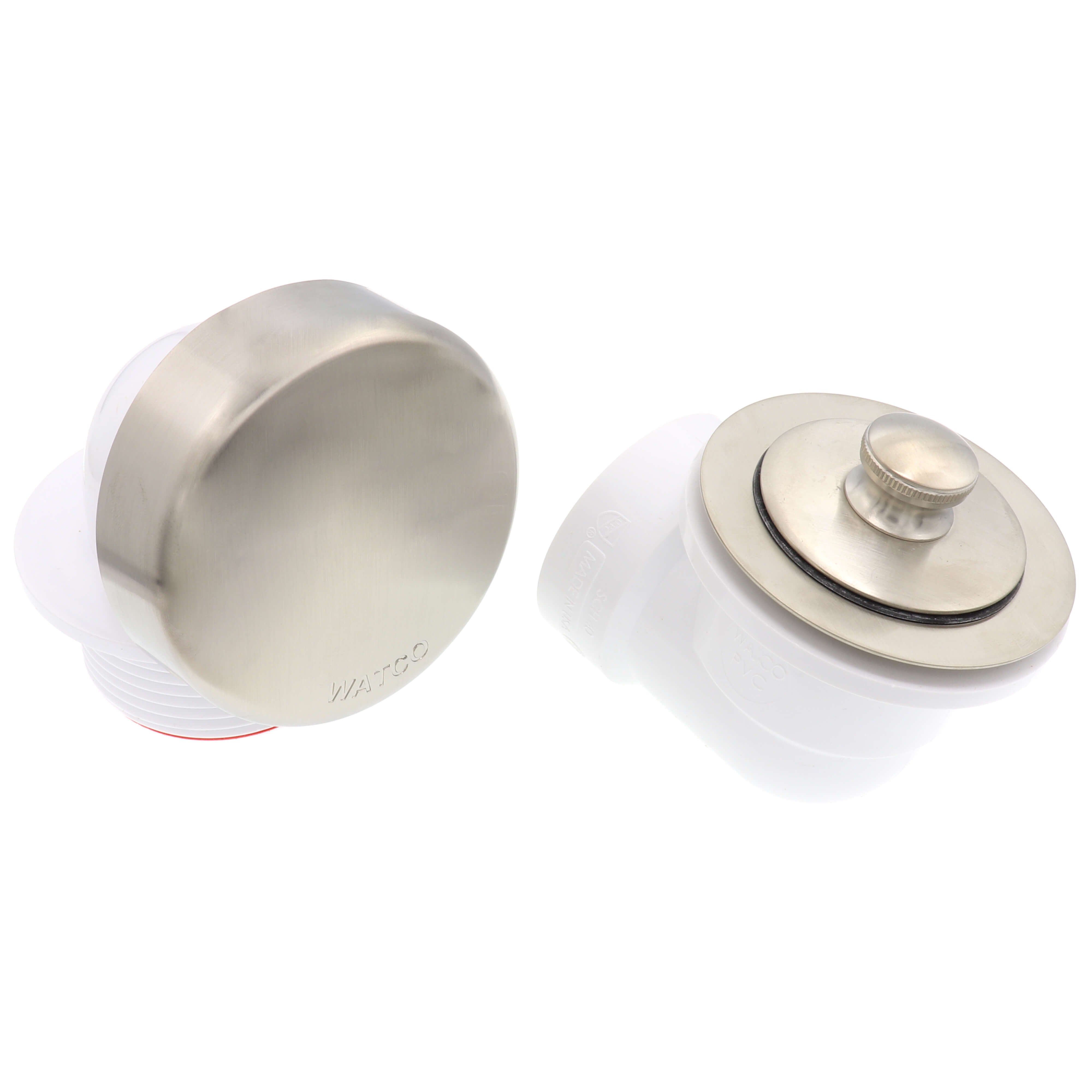 The Watco 901-PP-PVC-BN is a push-pull bath waste half kit. Its construction features a one and a half inch schedule forty PVC pipe with solvent-weld assembly. This kit includes all necessary components such as the overflow and drain elbows, overflow plate assembly, test plug, membrane, stopper, and drain. This model is designed to eliminate leaks and all screws associated with standard attachments.