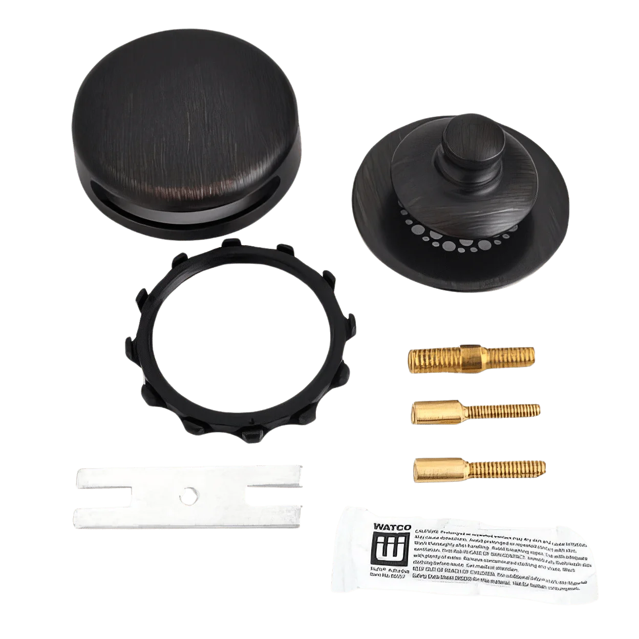 The Watco Universal NuFit Innovator 948700-PP-BZ-G-3P is a push pull drain trim kit designed for easy installation and effective water drainage. This stainless steel kit features a grid and an oil-rubbed bronze finish that blends with various bathroom styles. The product is ideal for waste and overflow applications, such as in hotels or apartments, making it versatile for numerous plumbing and repair needs.