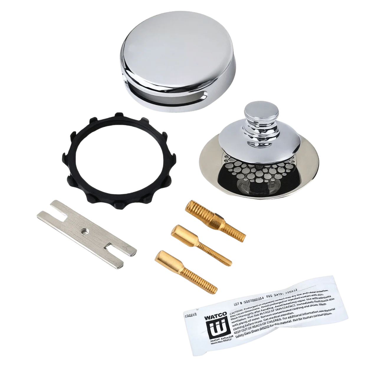 The Watco Universal NuFit Innovator Stainless Steel 3-Pin Push Pull Drain Trim Kit with Grid, MPN 948700-PP-CP-G-3P, offers an effective solution for your bathtub drainage needs. Designed for easy installation, the kit includes essential components for enhancing your existing drain system.