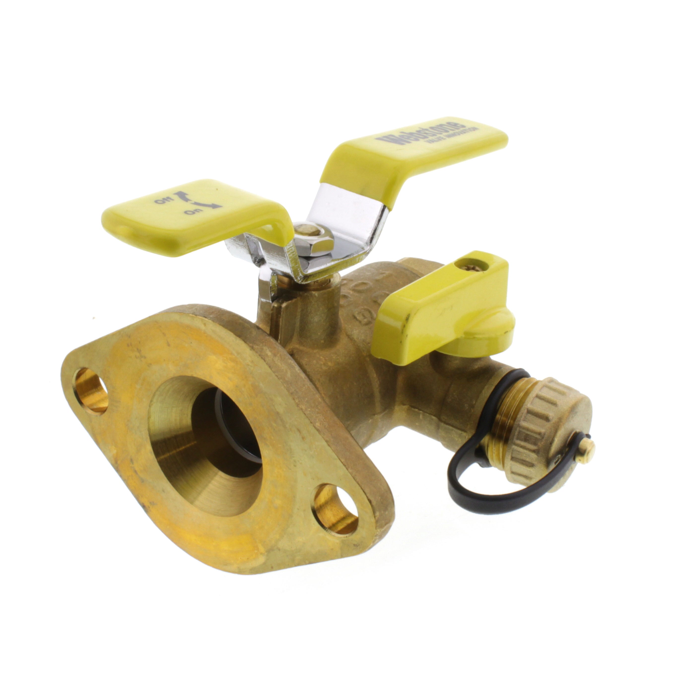 The Webstone 40414 is a one-inch threaded isolator flange with drain designed for effective use in heating systems. This product features a reliable brass body and flange construction. The unit is compatible with two-bolt flanged circulator pumps and is suitable for both residential and commercial applications. It is especially useful in closed systems that require a large port drain and fill valve.