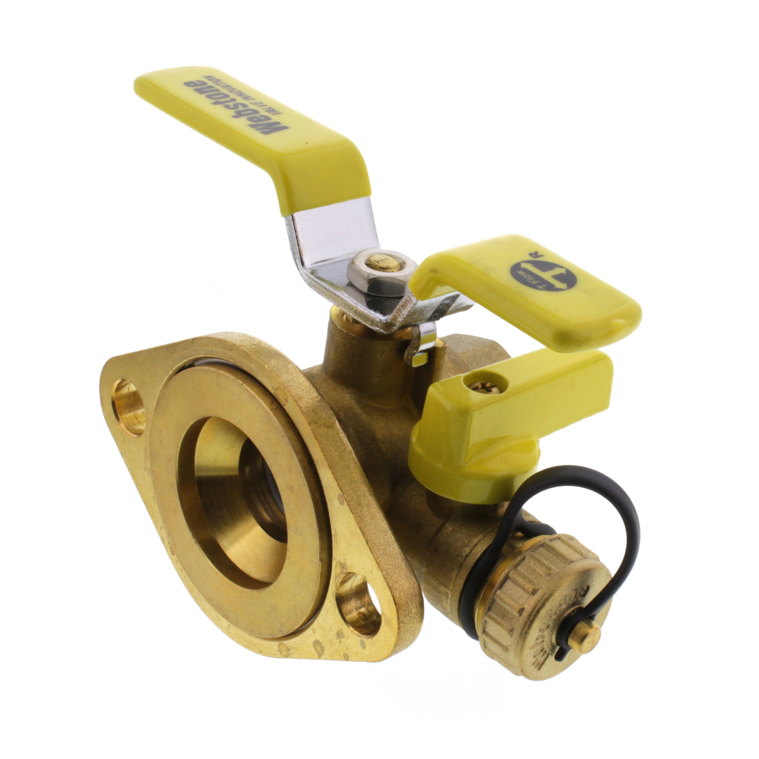 The Webstone 41414 is a 1 threaded isolator flange with drain and a rotating flange. This valve is designed for reliable isolation in heating systems and is made from forged brass. It features a detachable rotating flange, allowing for easy installation and maintenance.