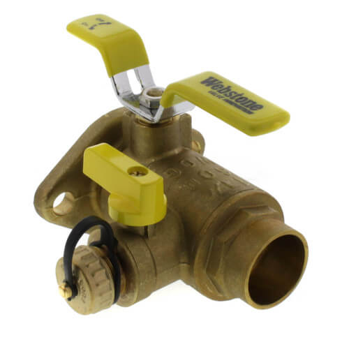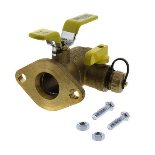 Webstone 50415 is a 1-1/4 inch sweat isolator flange designed for use with circulator pumps. This flange works in residential and commercial applications with two-bolt flanged circulator pumps. The brass body and flange provide strength and allow for versatility where a pipe and flange connect. This isolator flange is intended for closed systems requiring a drain and fill valve. The product includes a wing-style T handle, along with necessary mounting nuts and bolts.