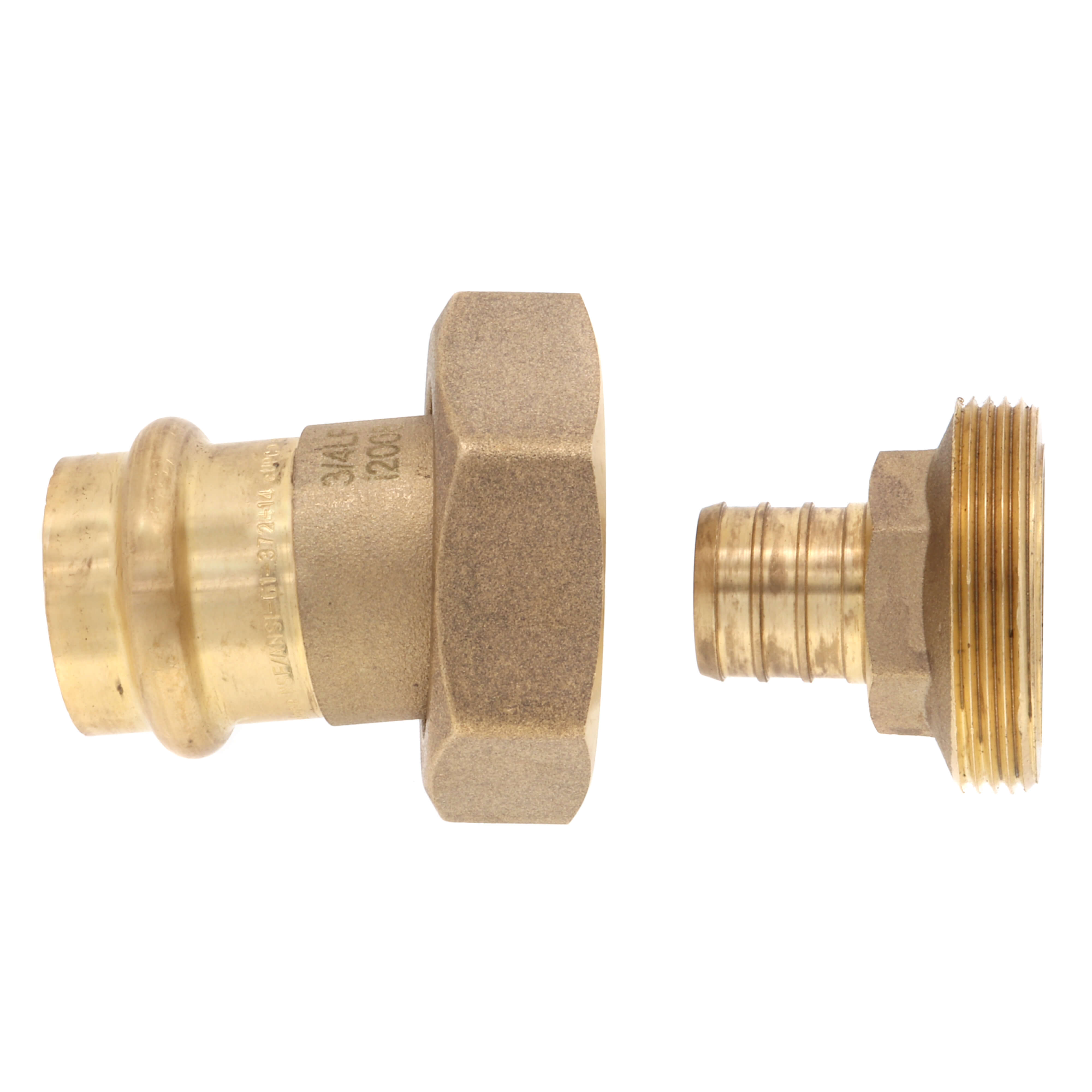 The Webstone H-18103W is a 3/4 Press × PEX Crimp Transition Union designed for reliable plumbing connections. This fitting allows for effective joining of press and PEX piping systems, ensuring a secure and leak-free connection.
