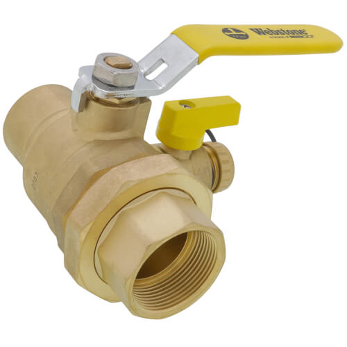 The Webstone H-50436 is a standard ball valve designed for high flow applications. This valve features a single union end and is equipped with a hose drain. It has a nominal size of one and one-half inches and is made of forged brass. This valve is ideal for use in residential and commercial plumbing, heating systems, and can handle various media including water, oil, and glycol mixtures.