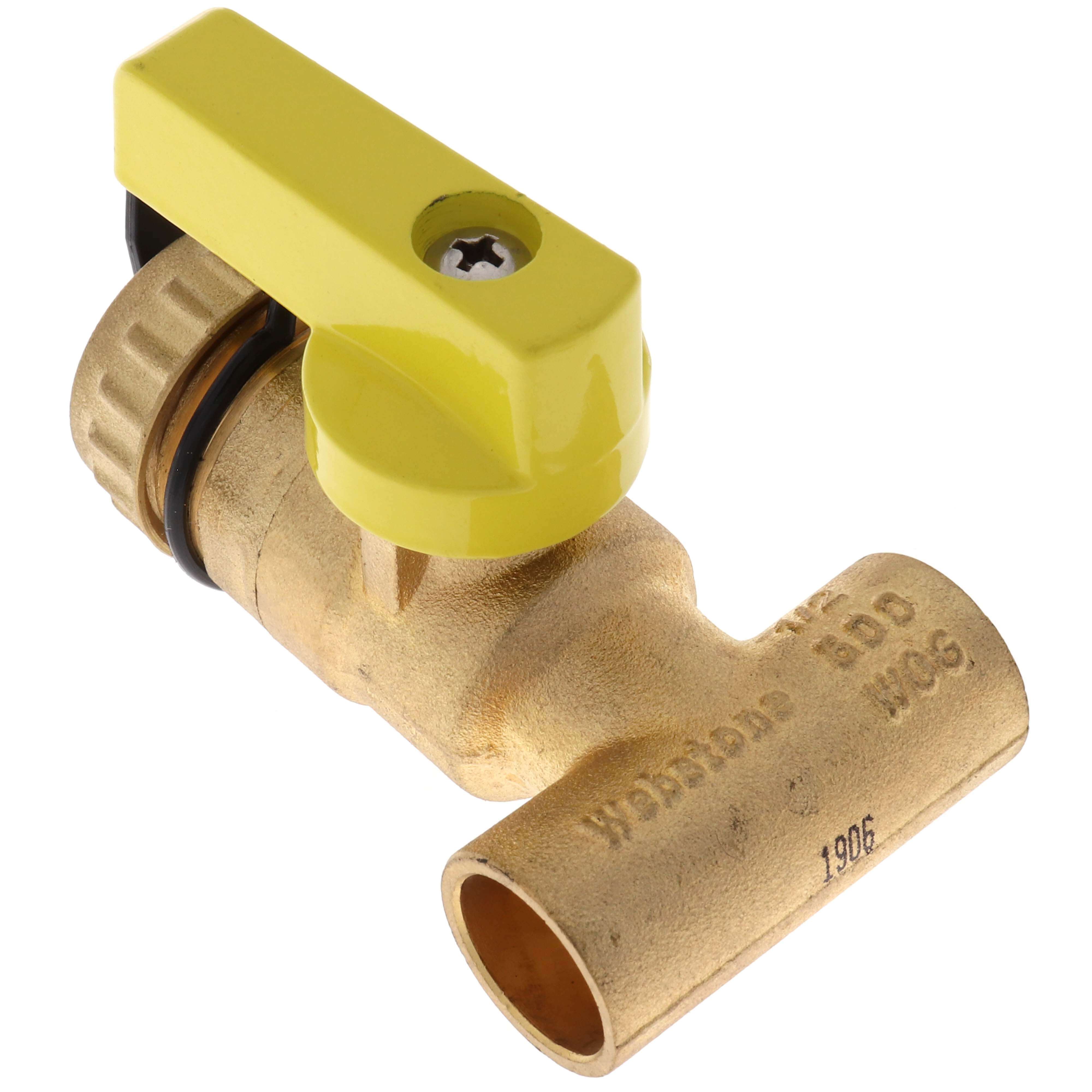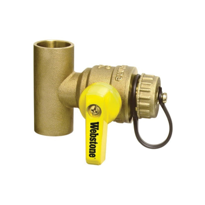 The Webstone H-50672W is a lead-free Pro-Pal T-Drain valve designed to provide an efficient solution for water, oil, and glycol mix applications in plumbing and heating systems. This full port forged brass fitting features a high-flow hose drain and an adjustable packing gland, making it ideal for various installations.