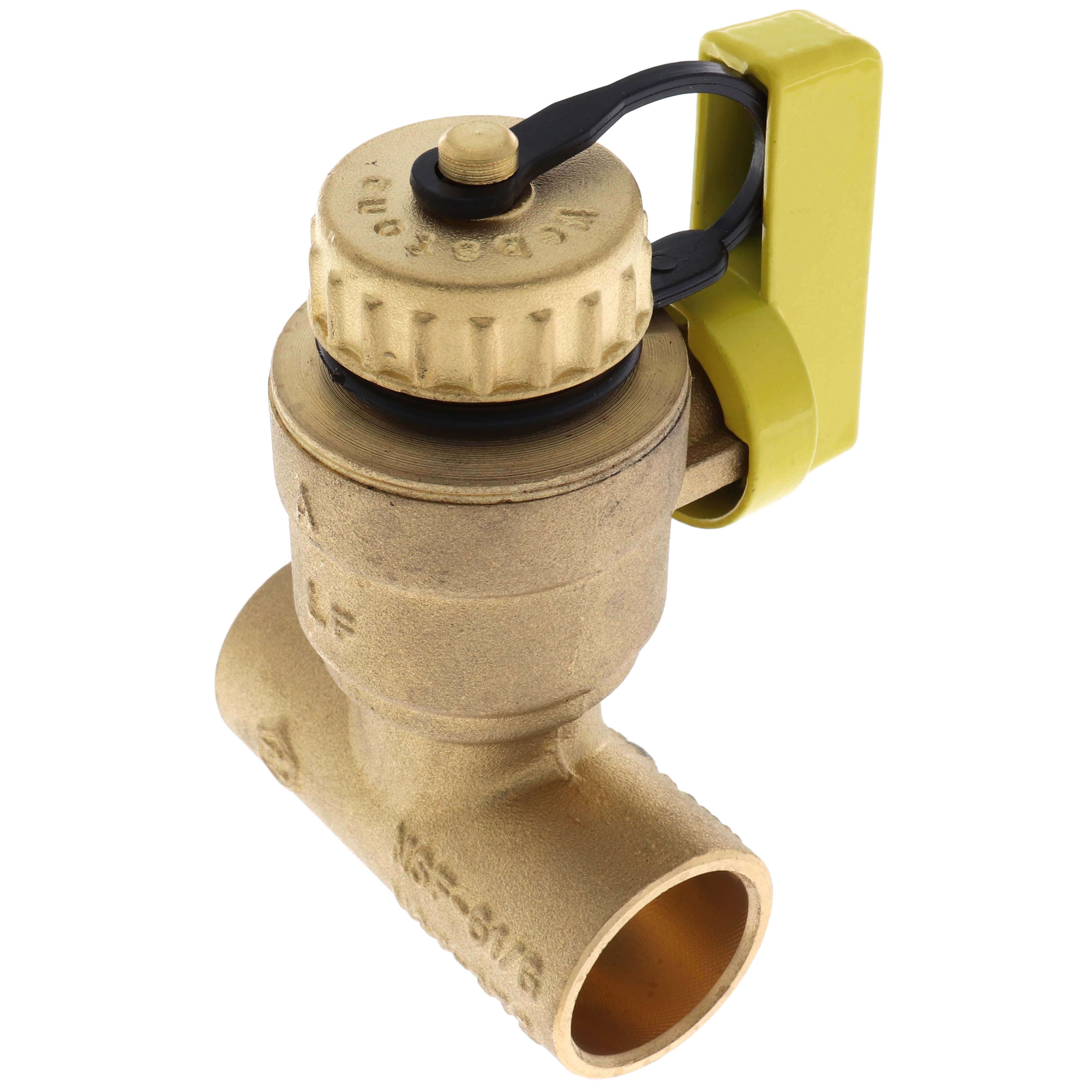 The Webstone H-50673W is a lead-free T-drain valve suitable for various plumbing applications. It features a full port design to maximize flow and efficiency. This valve is constructed from forged brass, allowing for reliable performance in residential and commercial usage. It simplifies installations by combining multiple components into one. The adjustable packing gland enhances performance and prolongs the valve's lifespan. The H-50673W is ideal for controlling water, oil, or glycol mixes in heating systems and ensures compliance with state and federal low-lead laws.