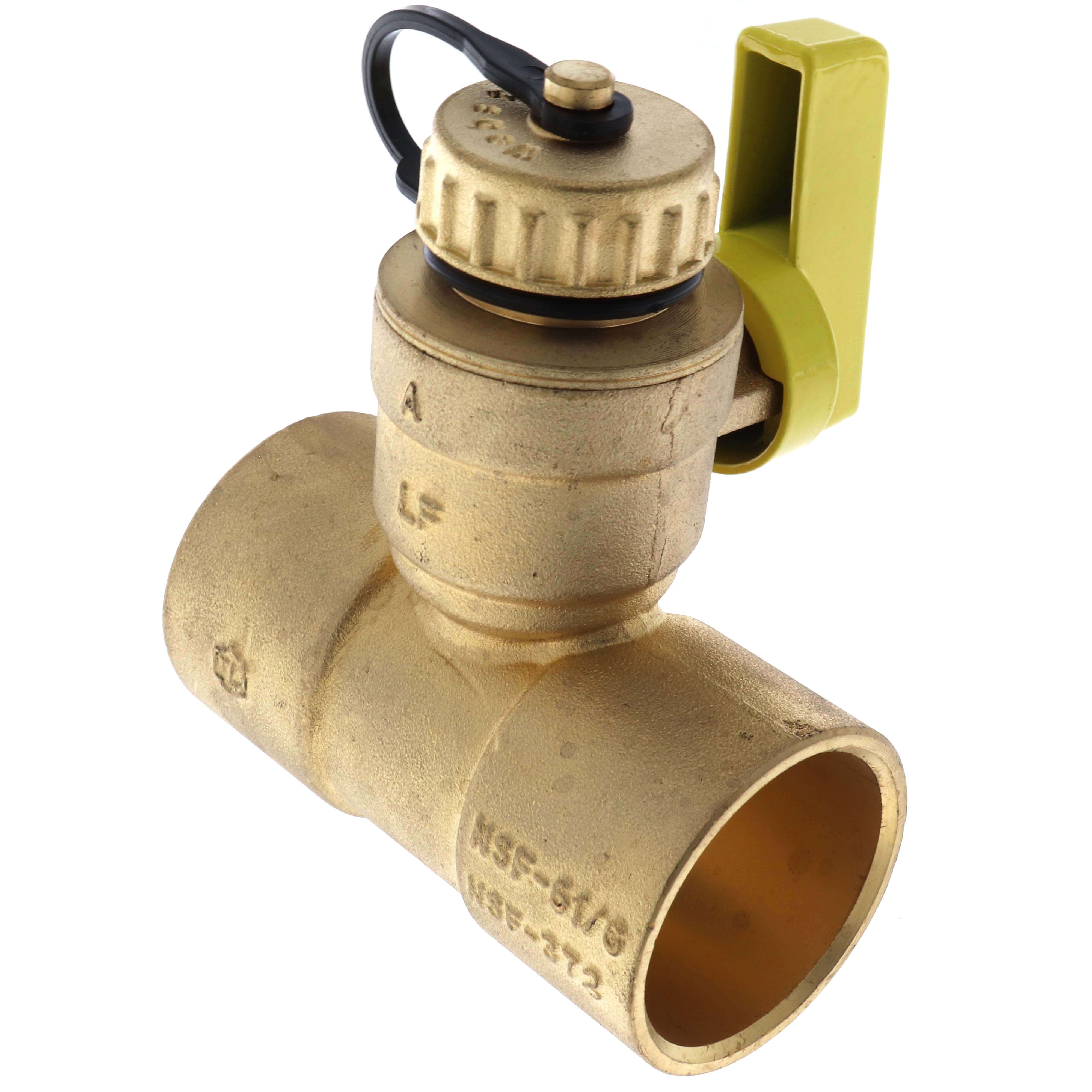 Webstone H-50675W is a 1-1/4 inch sweat lead-free Pro-Pal T-Drain. It features a full port forged brass fitting with a hi-flow hose drain and an adjustable packing gland. This valve is designed for efficient installation in residential and commercial plumbing systems.