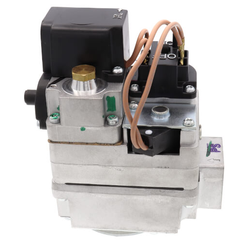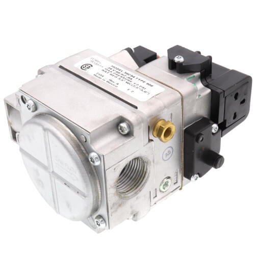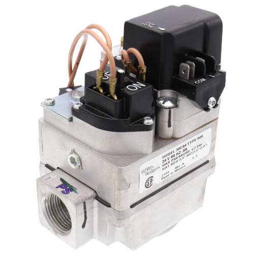 The Emerson Climate-White Rodgers Gas Valve with MPN 36C94906 is designed for use with natural gas systems. This valve operates on 24 volts and features a slow-opening mechanism that minimizes pressure surges, enhancing safety and reliability in gas applications. It has a three-quarter inch inlet and outlet connection, ensuring compatibility with standard gas appliances.