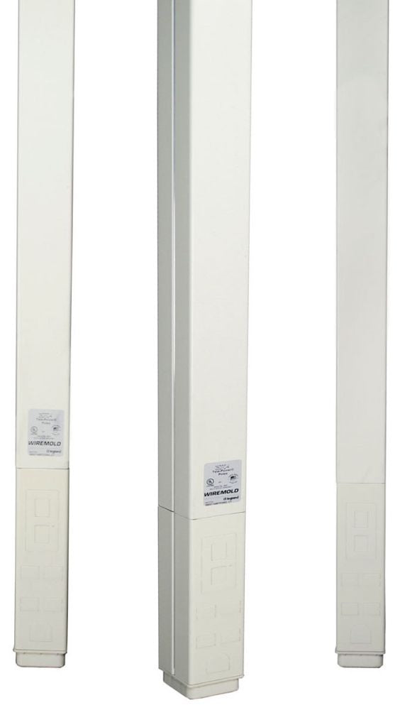 The Wiremold 25DTC-415 Tele-Power Pole offers a blank steel design suitable for various power distribution applications. This pole allows for efficient routing of power, data, and A/V services in open spaces. It comes furnished unwired with no outlets, making it ideal for custom setups.