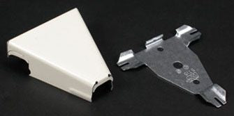The Wiremold 5715WH is a tee fitting designed for use with the 700 Series raceway. It connects branches at right angles, simplifying raceway layouts for various applications. The product is made from steel and has a white finish. Ideal for commercial, office, and residential environments.