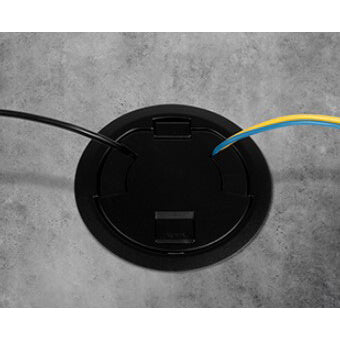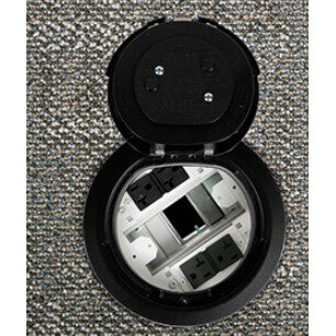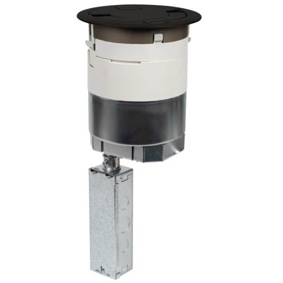 The Wiremold 6ATC2PBK Poke Through Device Assembly is designed for both new installation and retrofitting. This assembly provides essential access to power and data connections while maintaining a clean look. It includes two twenty amp duplex receptacles, recessed to avoid clutter and tripping hazards.