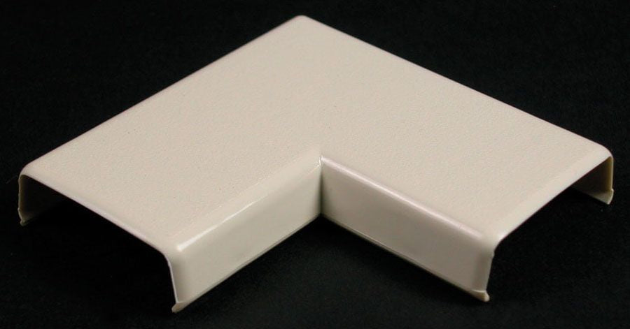 The Wiremold 811-WH is a non-metallic flat 90-degree elbow designed for use with the 800 series raceway system. This fitting enables right angle turns on the same surface, ensuring clean routing of electrical wiring.