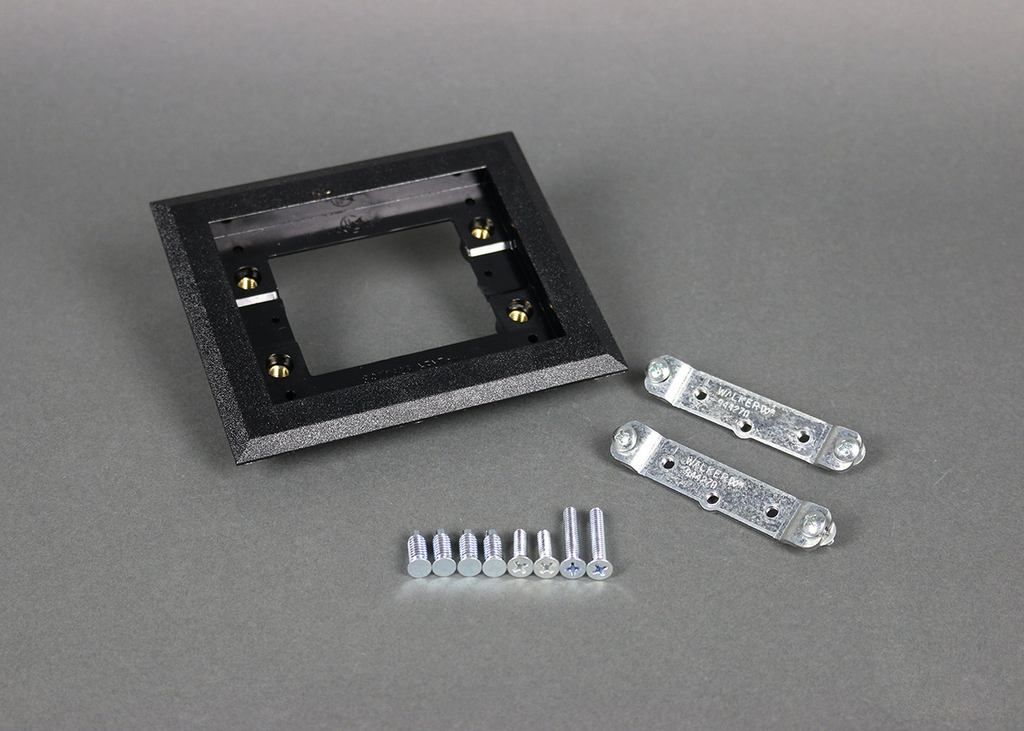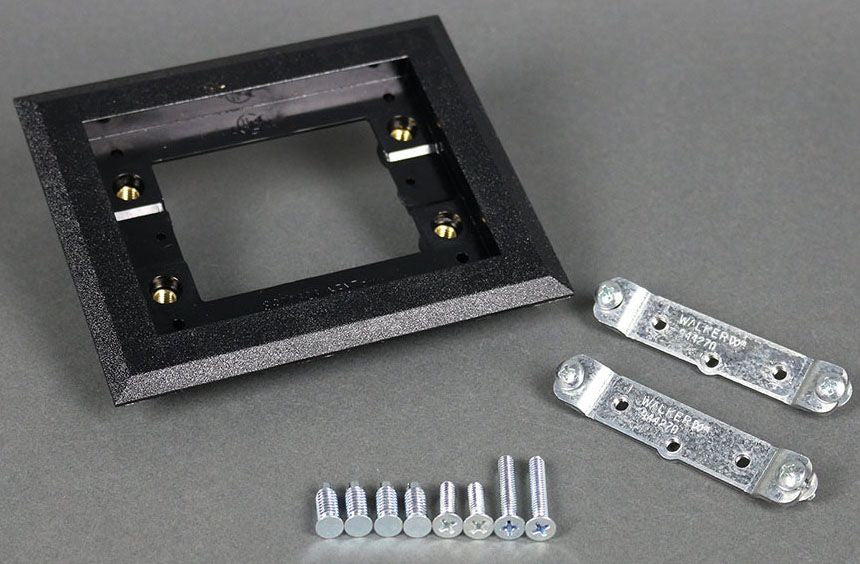 Wiremold 817PCC-BLK is a one-gang nonmetallic carpet flange designed for use with OmniBox and Modulink Series floor boxes. This flange accepts various compatible communication adapters and provides a secure fit for floor installations.