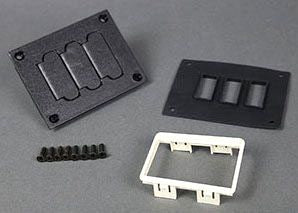 The Wiremold 829PFL-BLK is a black non-metallic flip lid cover designed for use with floor boxes. This product includes individual flip lids and a gasket, ensuring a secure fit. It is compatible with the Wiremold Open System CM-MAB adapter. Each order of replacement lids can be made using Cat. Nos. PFL-BLK and PFL-BRN, with each package containing three lids.
