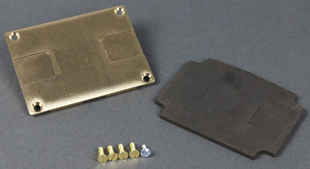 Wiremold 829STC is a brass data slide plate designed for communications applications. This product is intended to cover communication jacks without a mounting plate. The brass design ensures durability and compatibility with nonmetallic covers, as they can be interchanged with aluminum flanges.