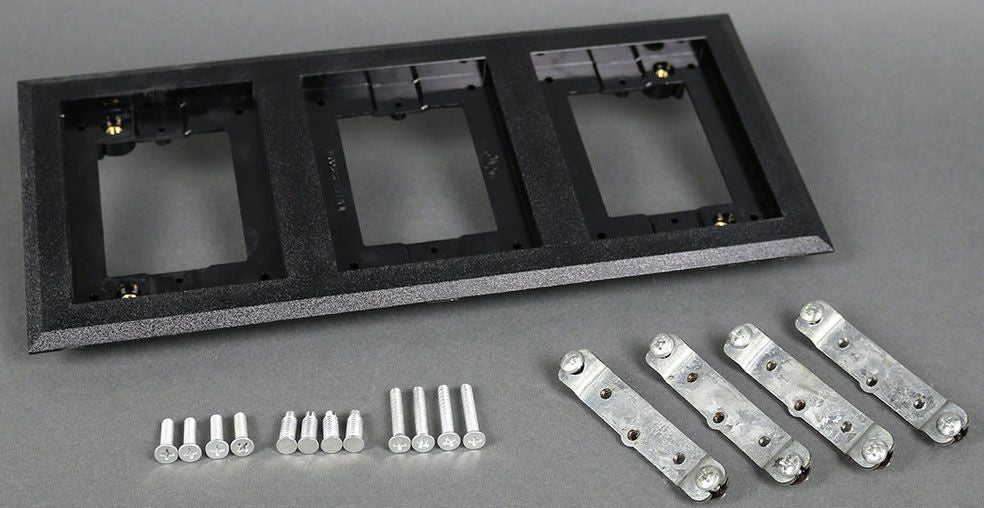 The Wiremold 837PCC-BLK is a three-gang nonmetallic carpet flange designed for use with OmniBox and Modulink Series floor boxes. This black flange accommodates Ortronics connectivity by pairing with the 829PFLRT cover and supports Wiremold Open System connections through the 829PFL cover. It is compatible with Ortronics MAB6TJ TracJack and MAB3S2 Series II adapters, in addition to Wiremold CM Series Open System adapters, which are sold separately. Note that polycarbonate cover plates should only be used with polycarbonate flanges.