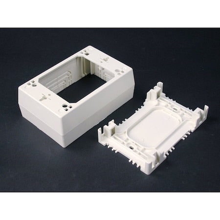 Wiremold NM2048 is a nonmetallic sure snap device box designed for easy installation. Its cover snaps onto the base without the need for screws. This makes it quick and efficient to set up. The cover features twist-outs on all sides for added convenience. It includes a rectangular knockout for an extension to a wall box. It is compatible with the 2700, 2800, 2900, and NM2000 Series Raceways.
