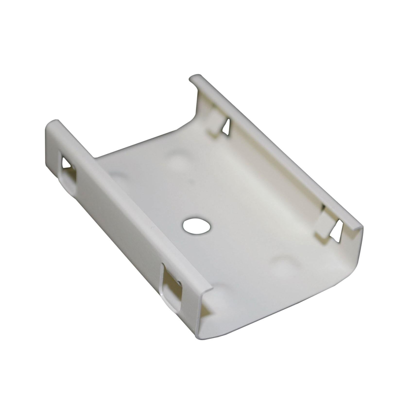 The Wiremold V2003 is a raceway supporting clip designed for use with the 2000 Series Raceway. It mounts securely to any surface using a No. 6 flathead screw. This clip supports lengths of raceway at any point desired, ensuring stability and ease of installation.