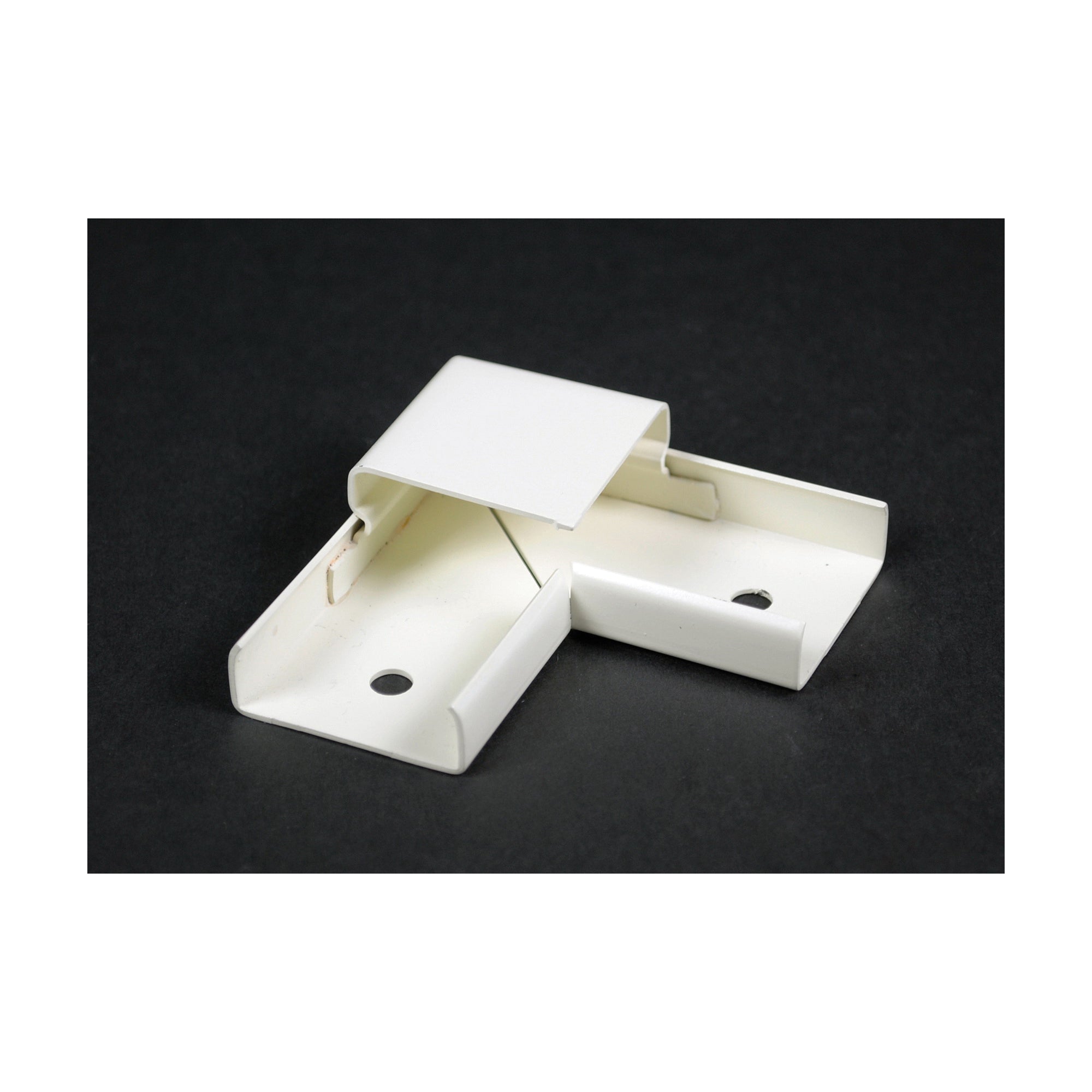 The Wiremold V2011 is a 90 degree flat elbow designed for effective surface raceway turns. This steel elbow is compatible with the Plugmold 20GB30 Series and 2000 Series multi-outlet power raceways. It allows for neat transitions at right angles, streamlining installation and maintaining a professional look.