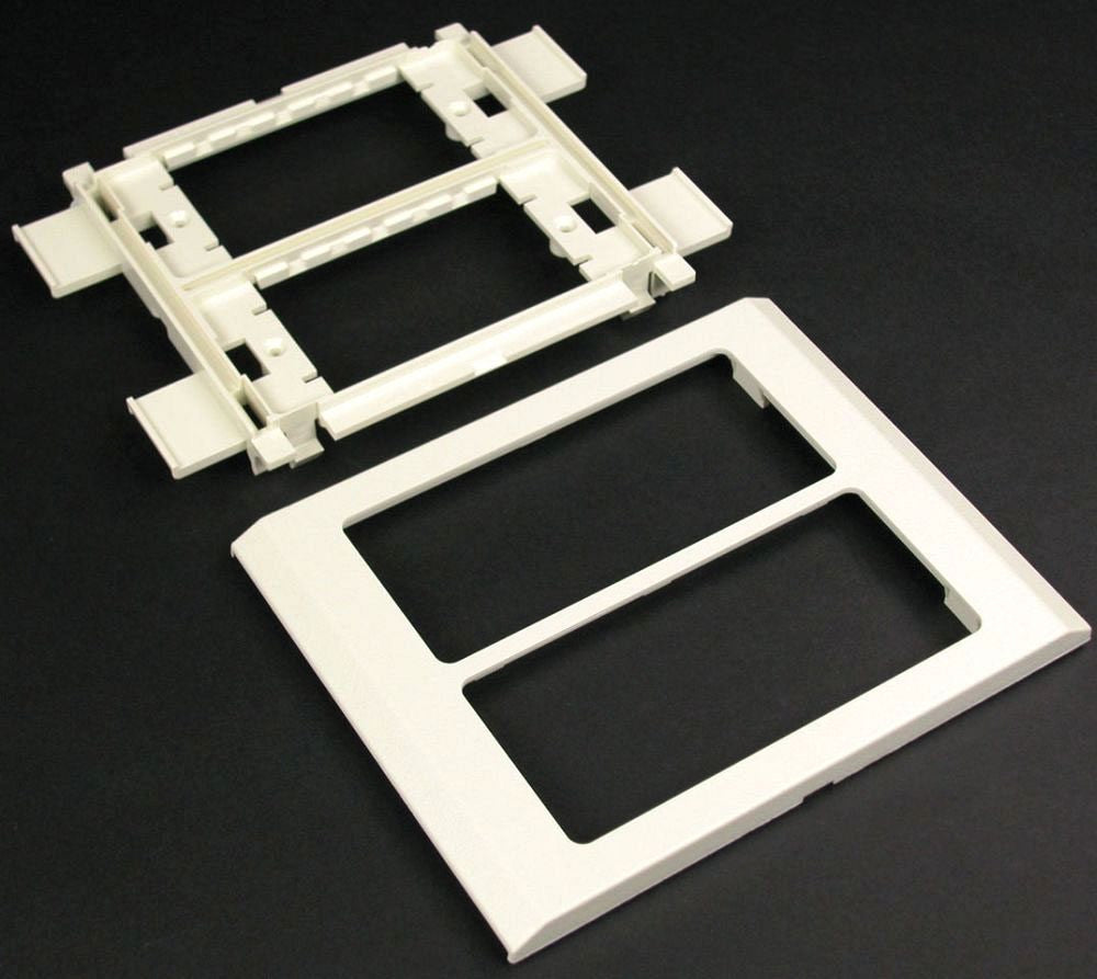 The Wiremold V4050 is a nonmetallic device mounting bracket designed for effective installation and support of various communication modules. It features a high impact plastic construction that ensures durability. The design allows for seamless transitions between raceway covers and fittings, contributing to a clean and professional finish.