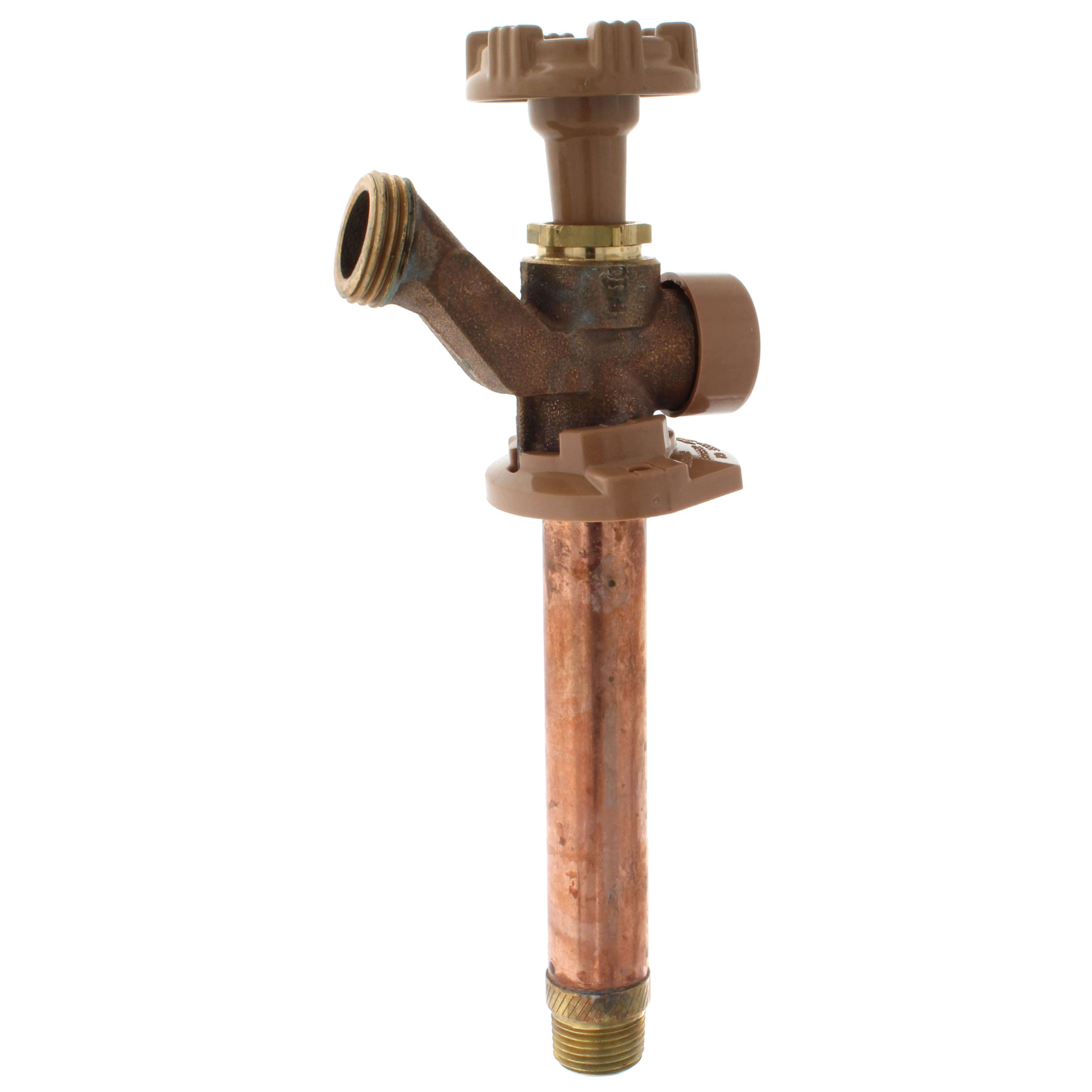 The Woodford Model 17CP-4-MH is a freezeless wall faucet designed for year-round use in residential and irrigation applications. This faucet features 1/2 inch connection and provides anti-siphon protection to prevent backflow issues. It will not freeze when the valve is turned off and the hose is detached. The backflow protection device safeguards against up to 125 psi of water pressure, eliminating the need for additional vacuum breakers. This model is made from durable materials, ensuring longevity and reliability.